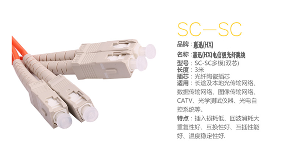 惠迅 SC-SC室內(nèi)光纖跳線連接頭采用壓-拉式設(shè)計(jì),易插拔。