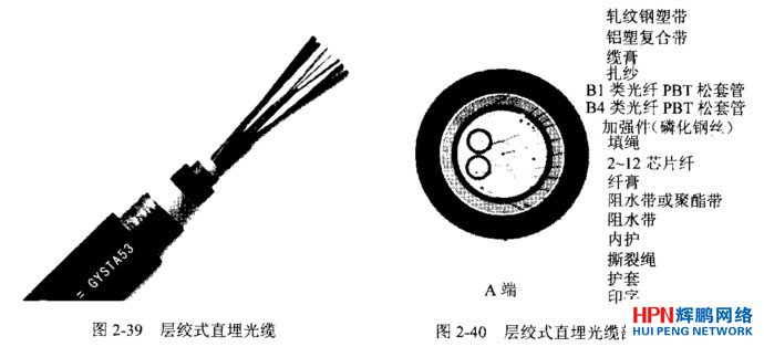 直埋式光纜用于直接埋設到開挖的電信溝內,埋設完畢即填土掩埋。采用直埋方式布線簡單易行,且施工費用低廉。直埋式光纜通常具有兩層金屬保護層,并且擁有非常好的防水性能。