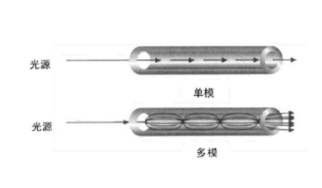 按光在光纖中的傳輸模式可分為:?jiǎn)文9饫w和多模光纖。